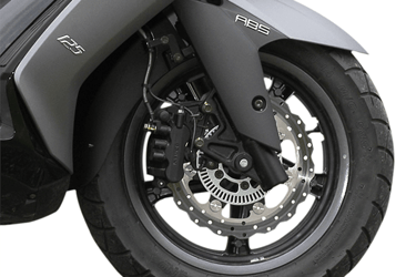 Bremse vorne: 1 WAVE-Bremsscheibe mit Dreikolben-Bremszange mit ABS 260 mm
